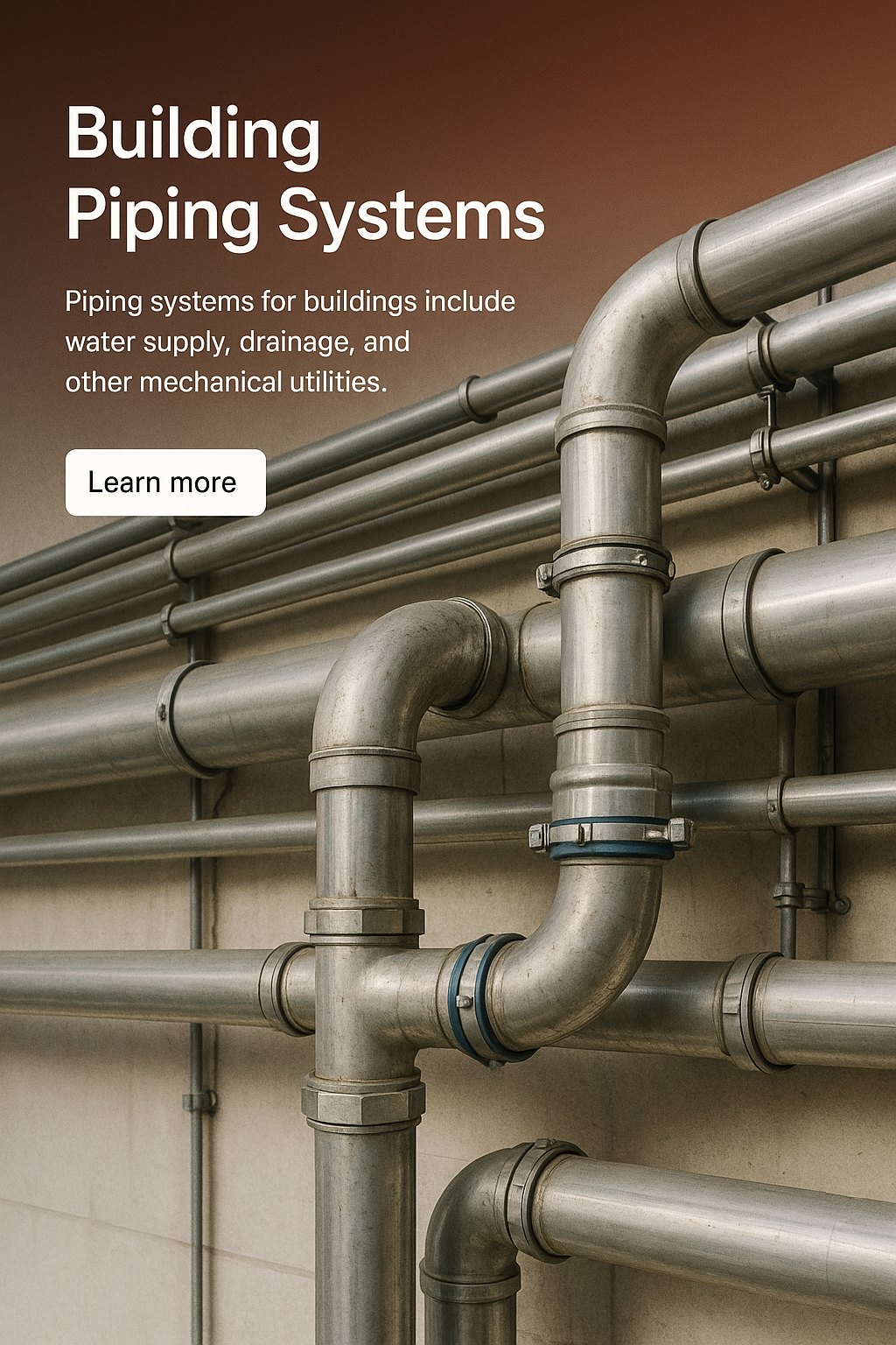 /Collection: /by davooda/Type: PNG/A modern and stylish illustration showcasing building piping systems, featuring a clean design with well-defined pipes and a gradient background. The layout includes a small label and a call-to-action button.