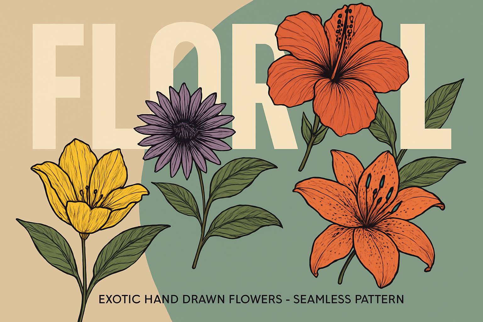 Bold Floral Illustration with Seamless Patterns for Design Projects