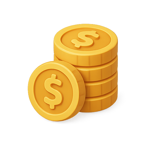 3D illustration of stylized gold coins stacked with a dollar sign, ideal for financial or investment-related themes. The vibrant colors and clean design make it suitable for marketing or educational materials.