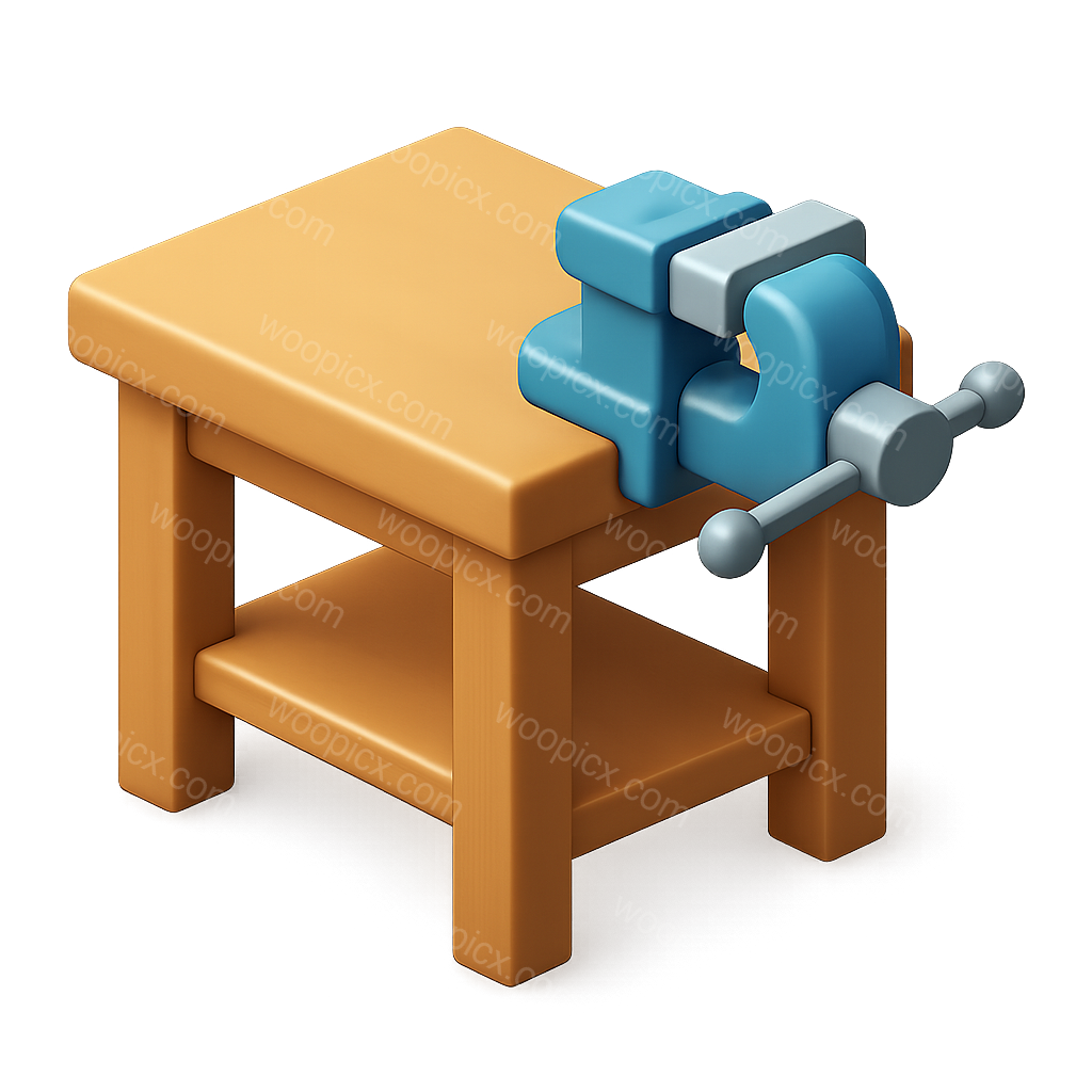 /Premium/Collection: /by davooda/Type: PNG/A detailed 3D icon of a workbench featuring a blue vice, showcasing a three-quarter isometric view. The design has a transparent background and a volumetric feel.