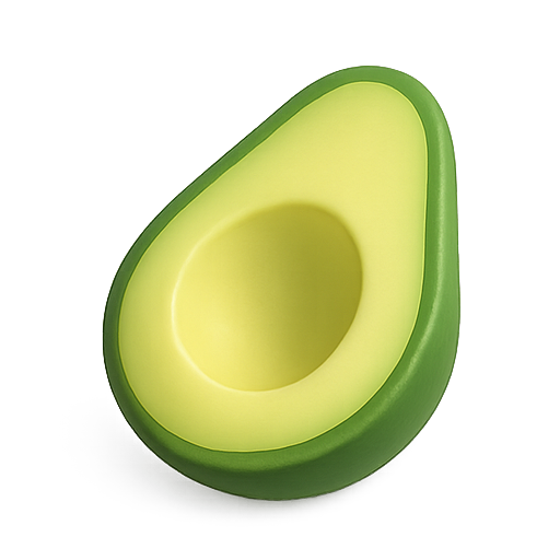 A high-quality 3D rendering of an avocado, emphasizing its smooth texture and vibrant colors. Ideal for food-related designs, culinary presentations, or healthy lifestyle promotions.
