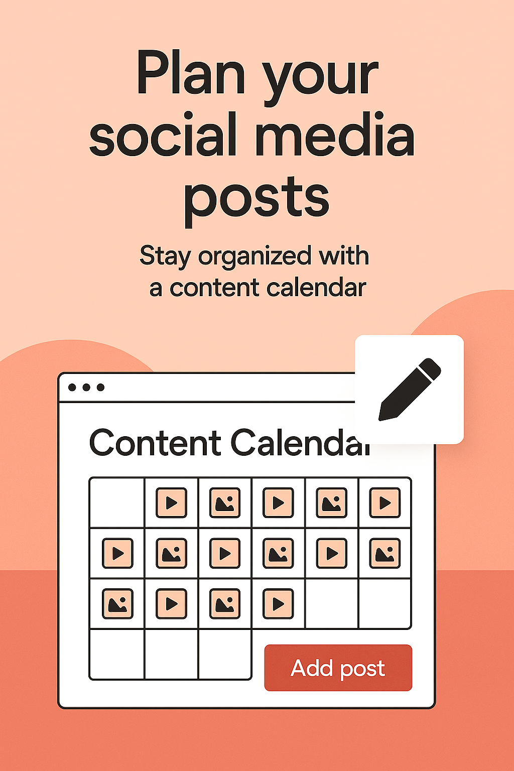 Informative graphic illustrating a content calendar for social media posts, featuring a clean layout and engaging icons, ideal for social media marketing.
