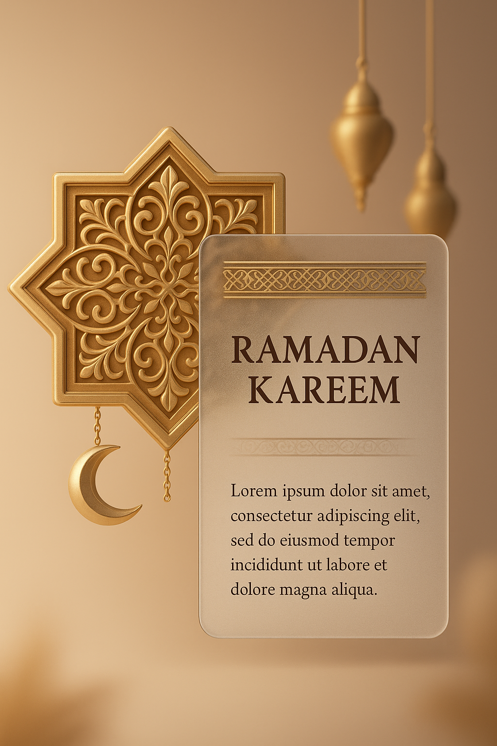 Elegant 3D Ramadan Kareem Ornament Design with Text Block