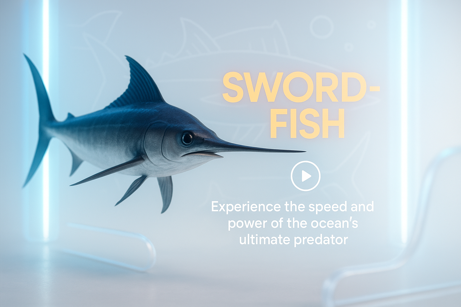 A visually striking 3D render of a swordfish, emphasizing its sleek design and dynamic presence, ideal for marine life exhibitions or educational content.