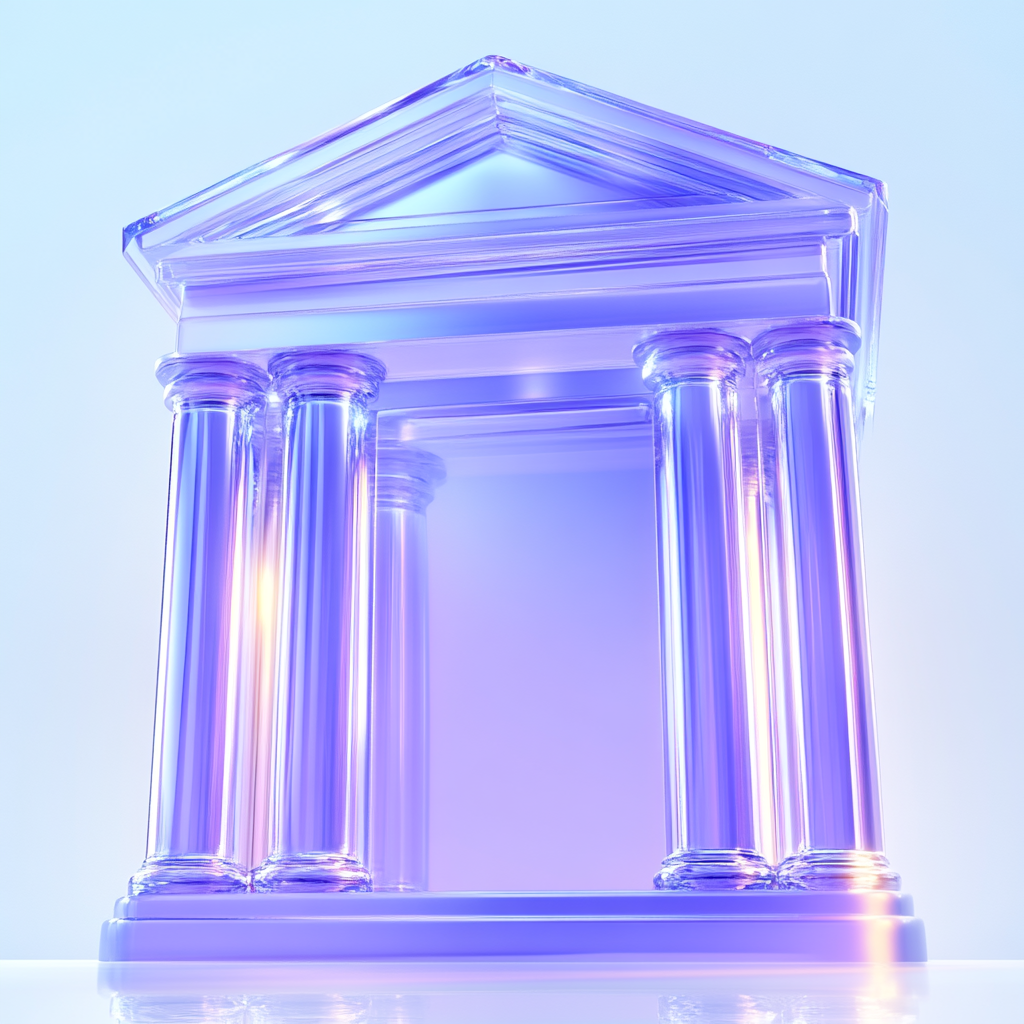 /Collection: /by davooda/Type: PNG/A visually striking 3D rendering of a classical building with columns, featuring a glossy, translucent finish. Ideal for architectural visualization or digital art projects.