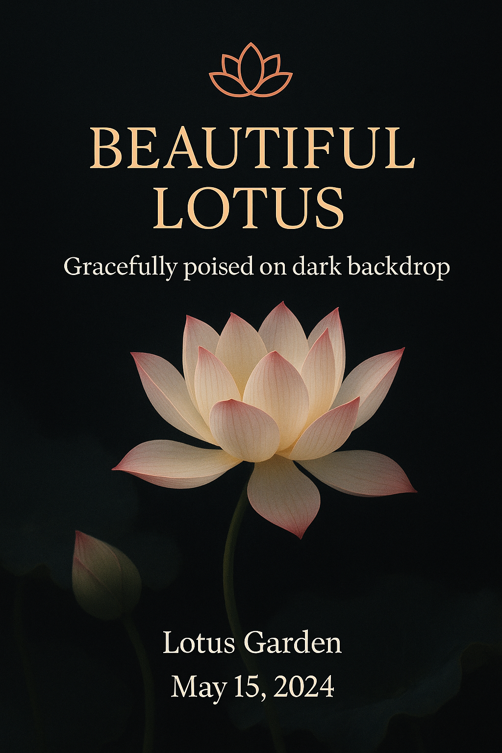 A beautifully designed poster showcasing a lotus flower against a dark backdrop, ideal for promoting events or floral exhibitions with a serene aesthetic.