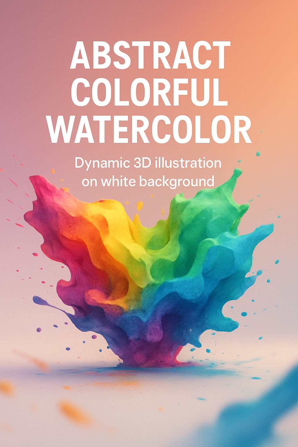 This dynamic 3D illustration features a vibrant watercolor splash on a white background. Ideal for creative projects, it conveys energy and artistic expression.