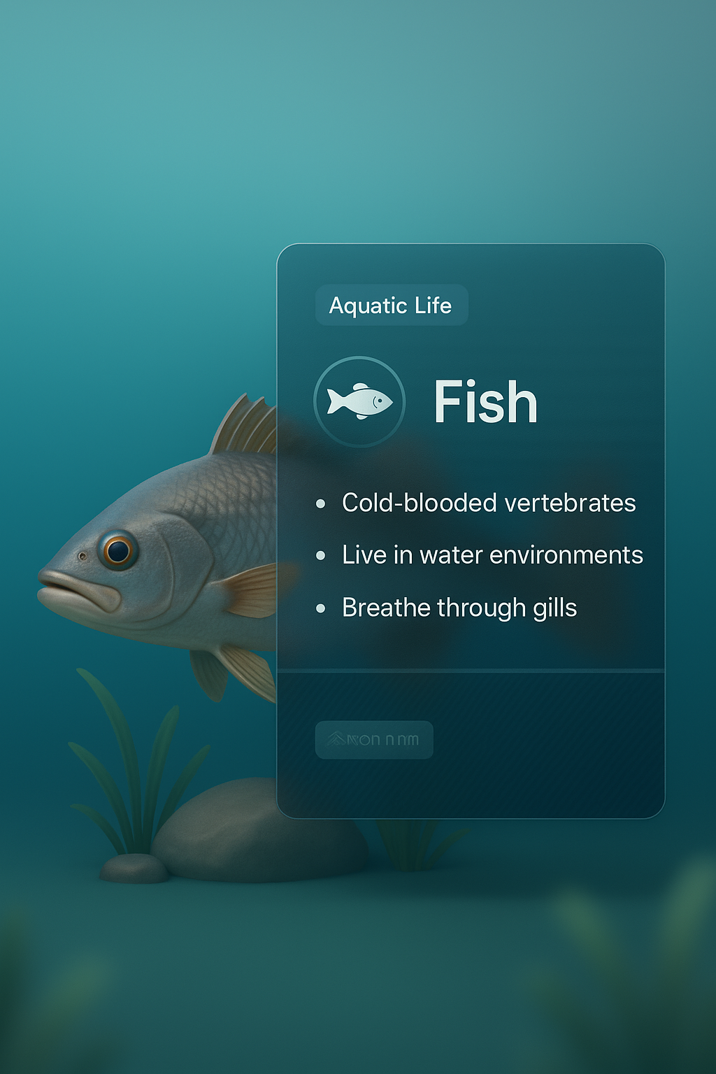 /Collection: /by davooda/Type: PNG/A visually appealing 3D illustration of a fish set against a gradient background. Information panels are seamlessly integrated, providing key details about aquatic life.