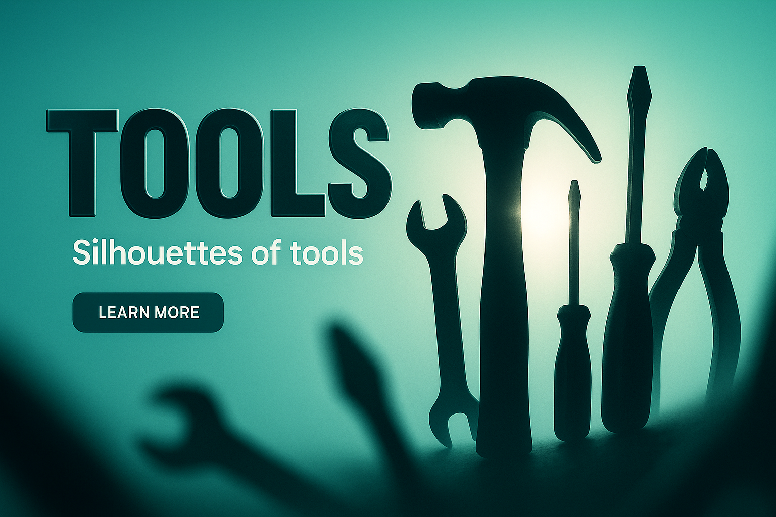 This image features silhouettes of various tools against a gradient background. It serves as a creative visual for tool-related content, ideal for promotional use.