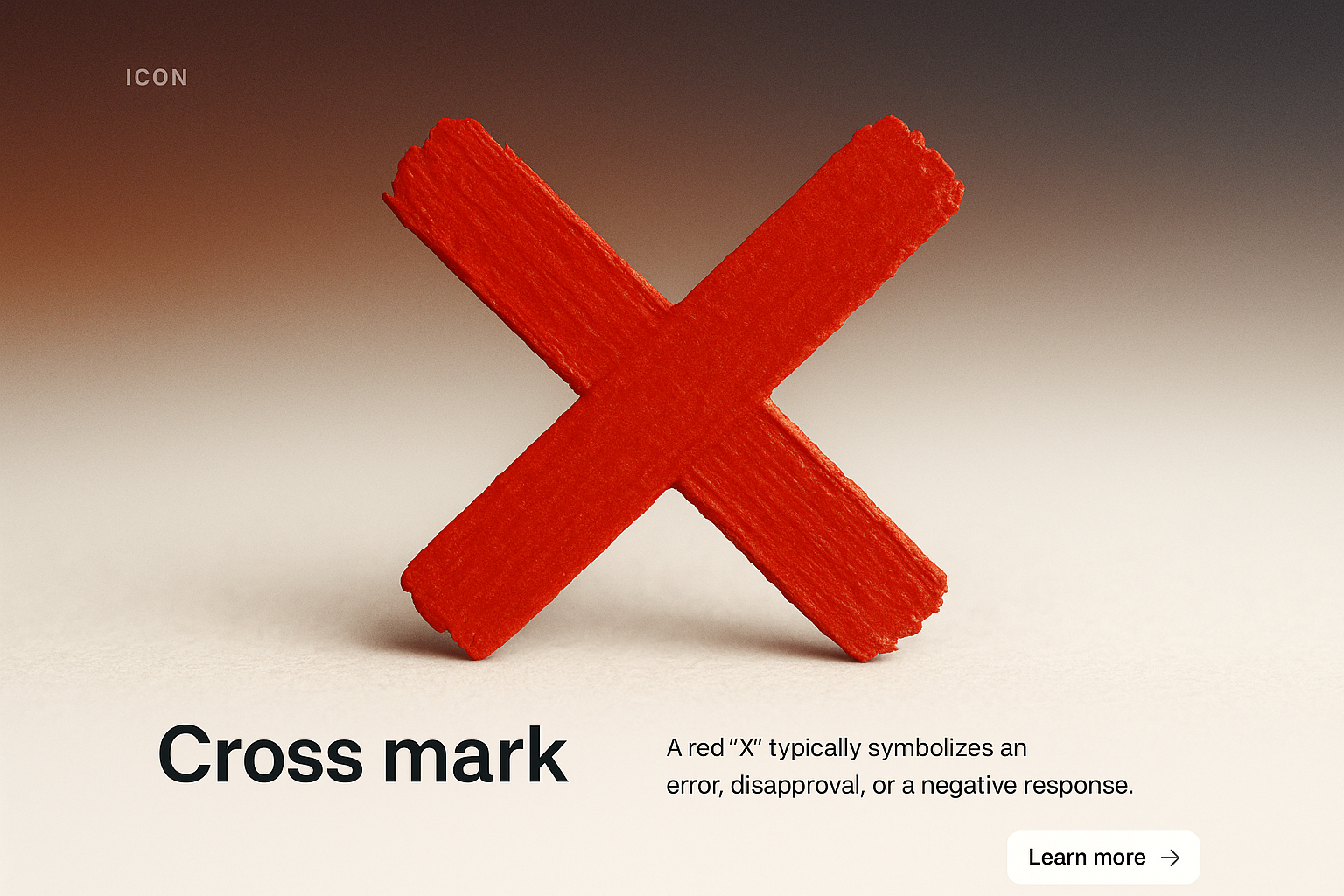 A visually appealing cross mark symbol rendered in bright red against a gradient background. The design includes a clear label and a concise text block.