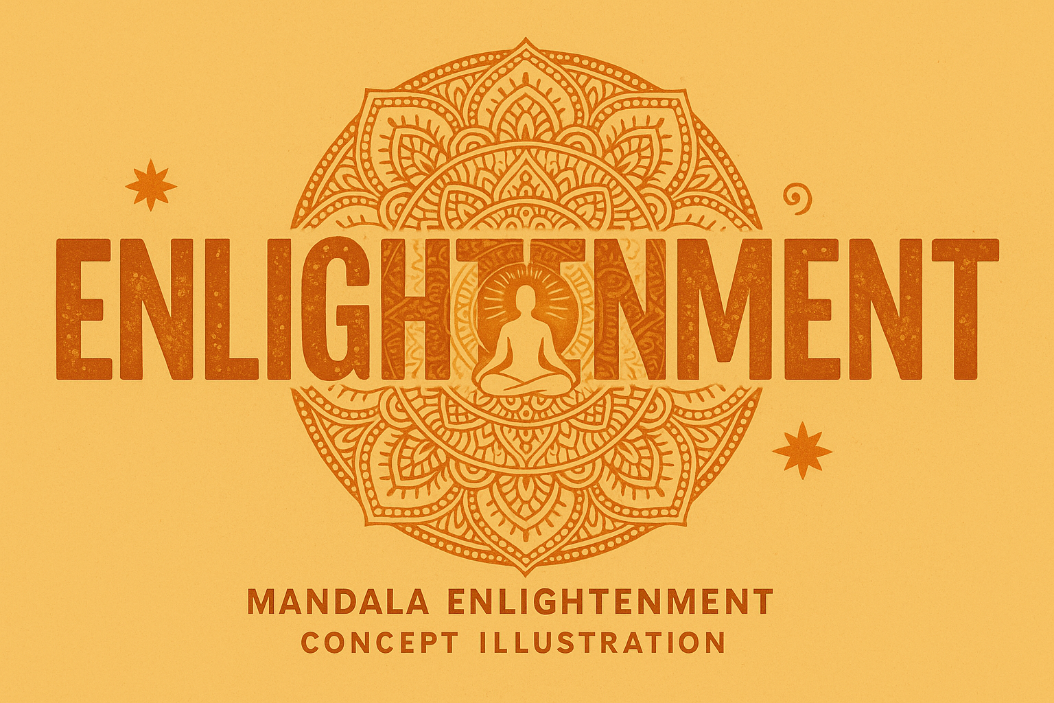 /Collection: /by davooda/Type: PNG/A beautifully designed mandala illustration symbolizing enlightenment, featuring intricate patterns and warm colors, ideal for spiritual or wellness-related content.