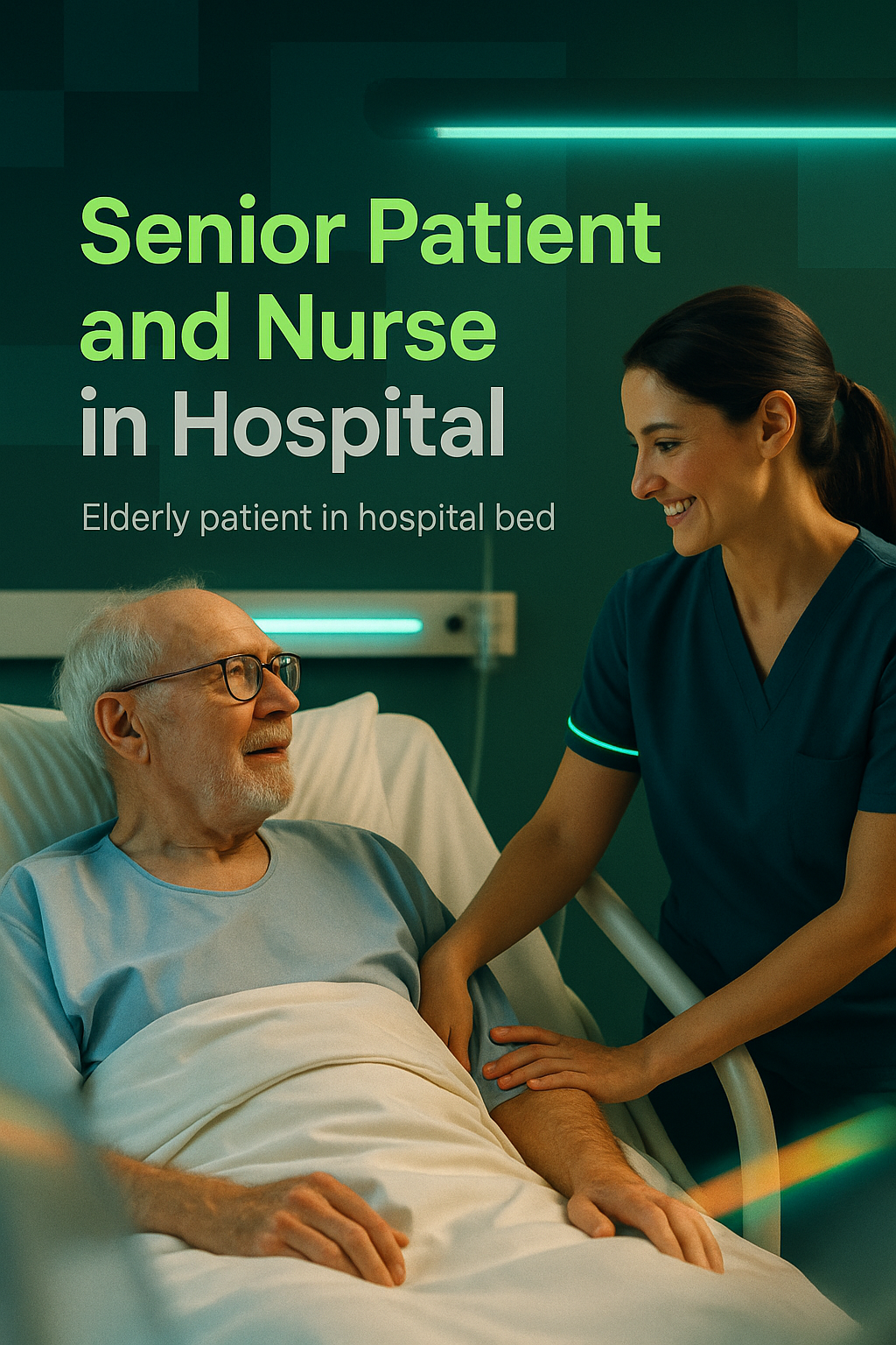 /Collection: /by davooda/Type: PNG/A heartwarming hospital scene featuring a nurse assisting an elderly patient in bed. The modern, calming design emphasizes care and compassion, suitable for healthcare marketing or educational materials.