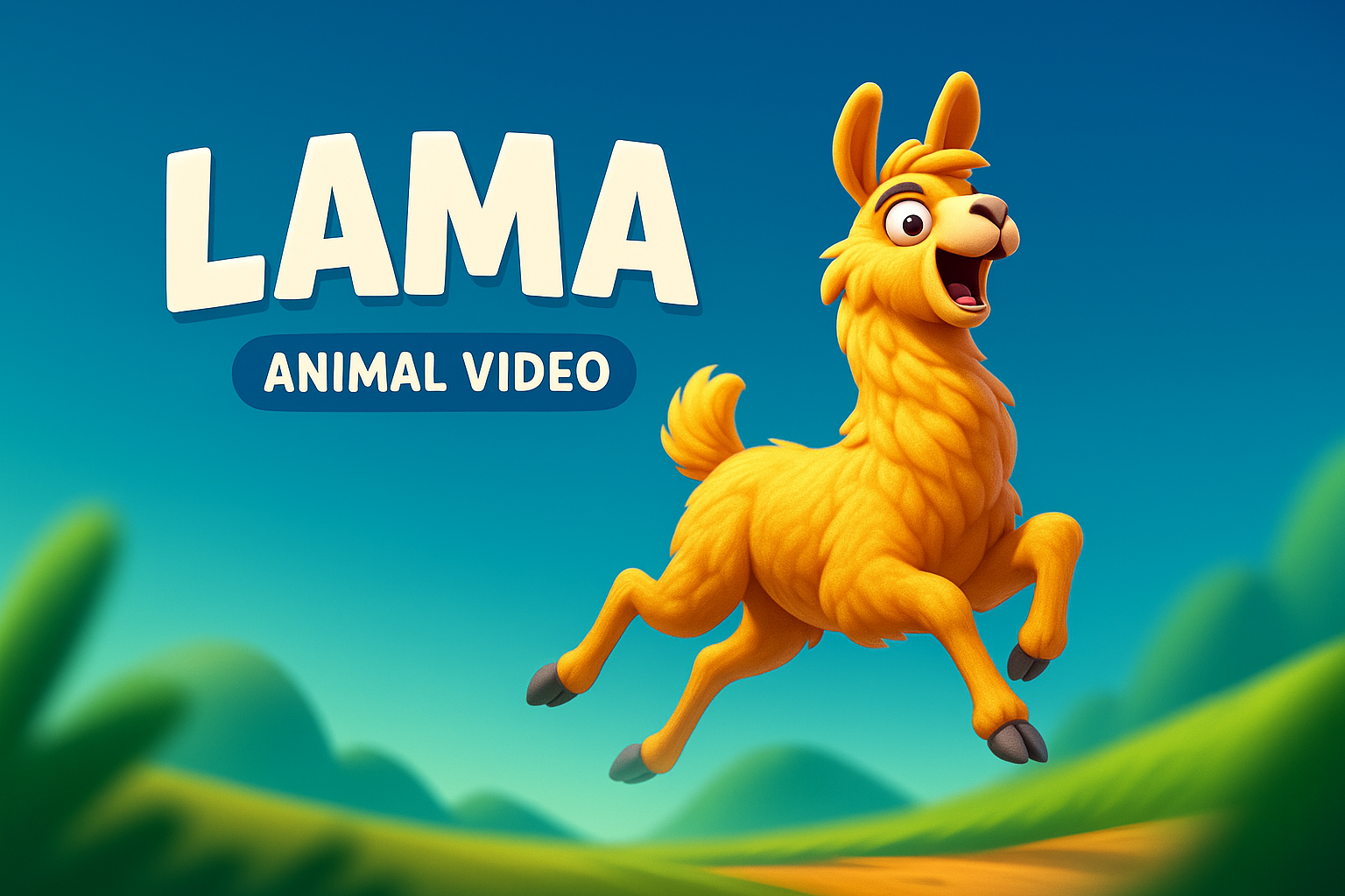 /Collection: /by davooda/Type: PNG/A vibrant 3D illustration of a cheerful lama in mid-run, set against a smooth gradient background. The design features engaging typography, enhancing the playful theme.
