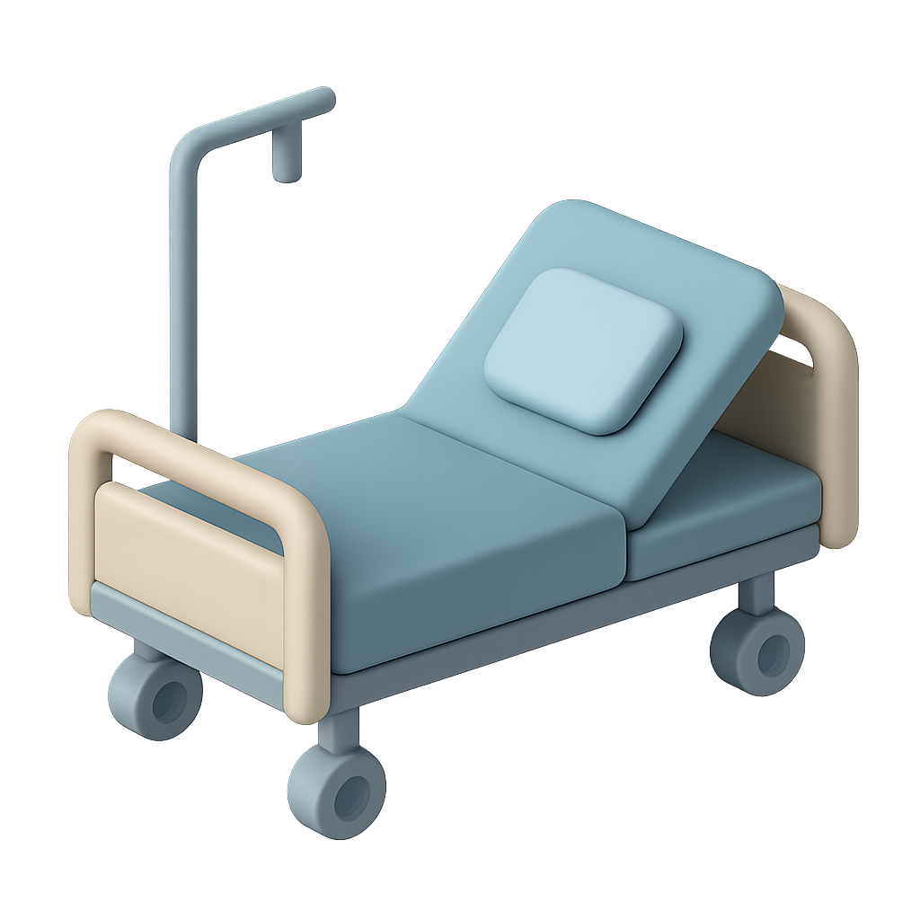 3D Isometric Hospital Bed Icon with Adjustable Features