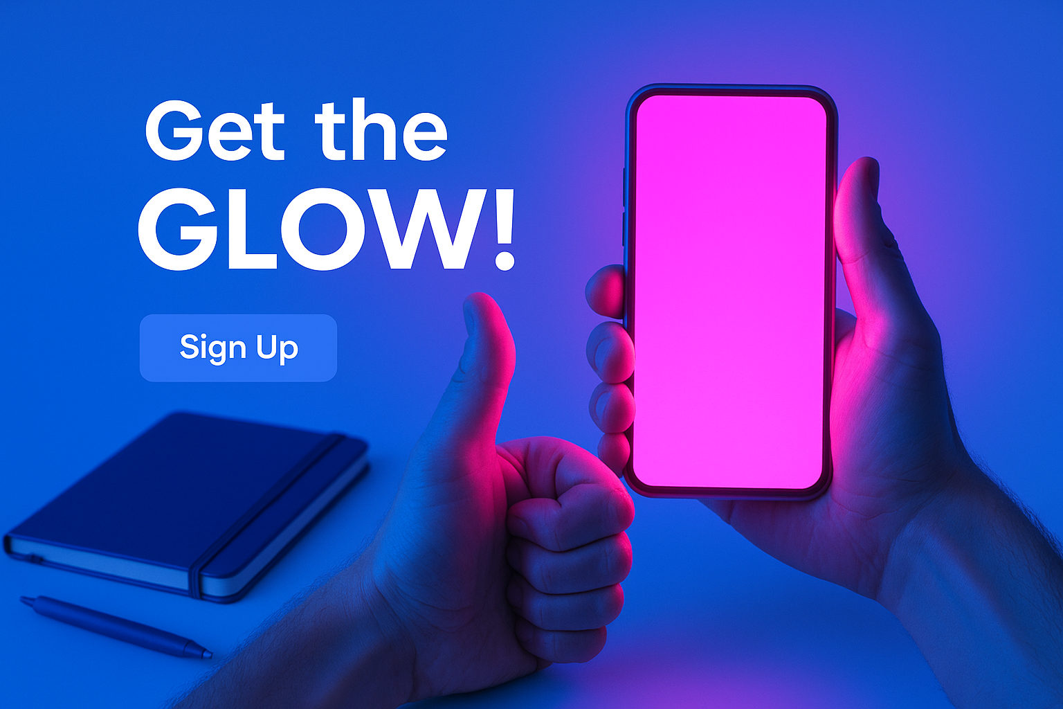 Vibrant Thumbs Up with Neon Phone Glow