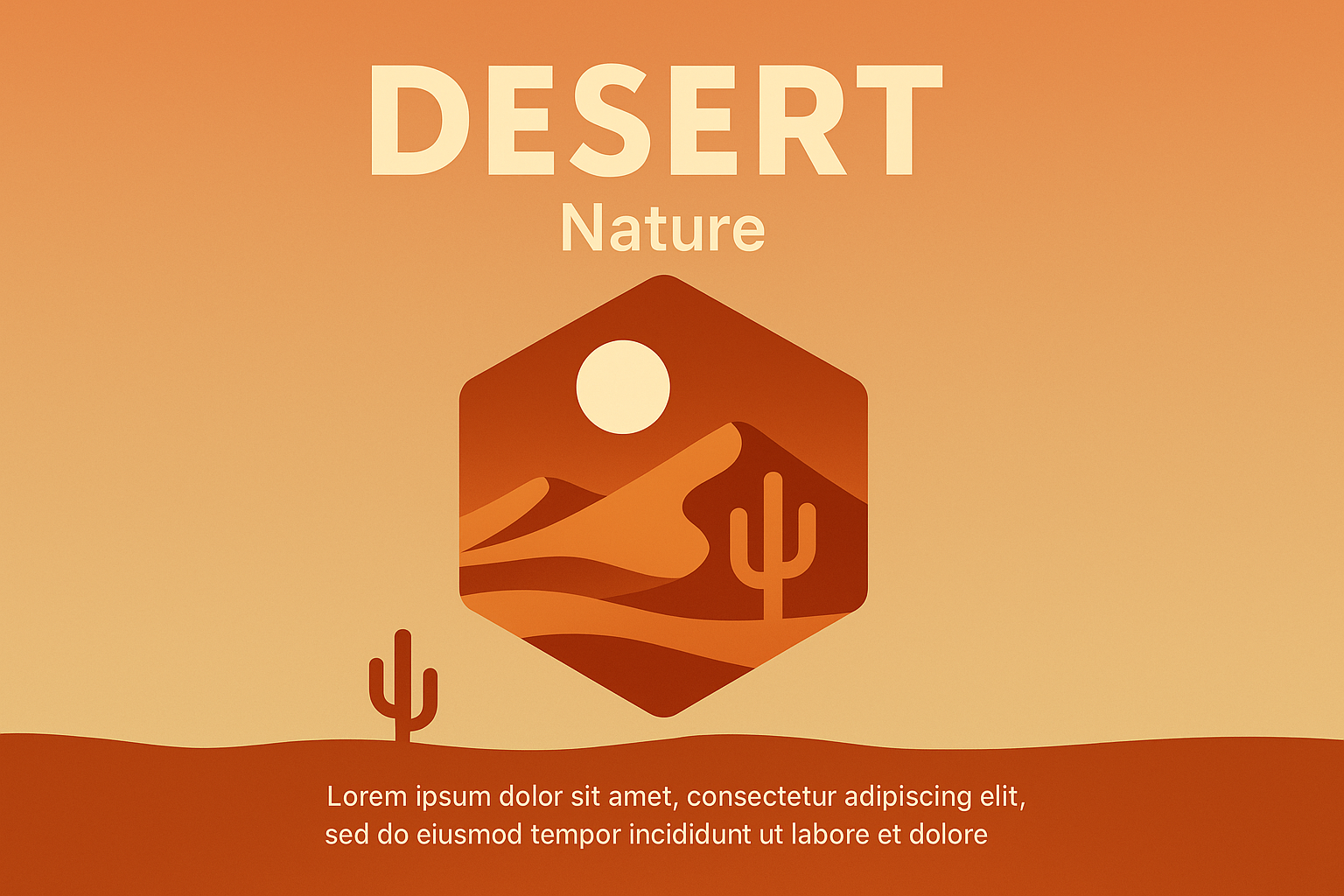 /Collection: /by davooda/Type: PNG/A stylized desert scene featuring geometric shapes, layered composition, and a warm color palette. The design includes mountains, cacti, and a sun, creating a professional yet engaging aesthetic.