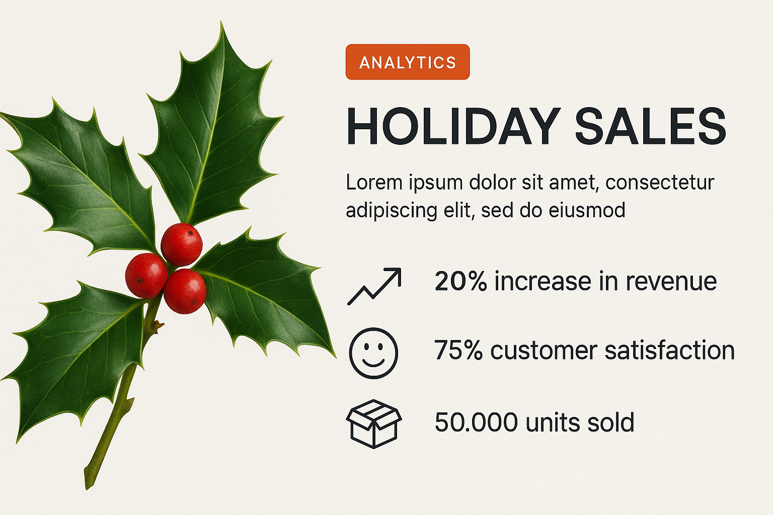 Informative infographic showcasing holiday sales metrics with festive design elements, ideal for seasonal marketing reports and presentations.