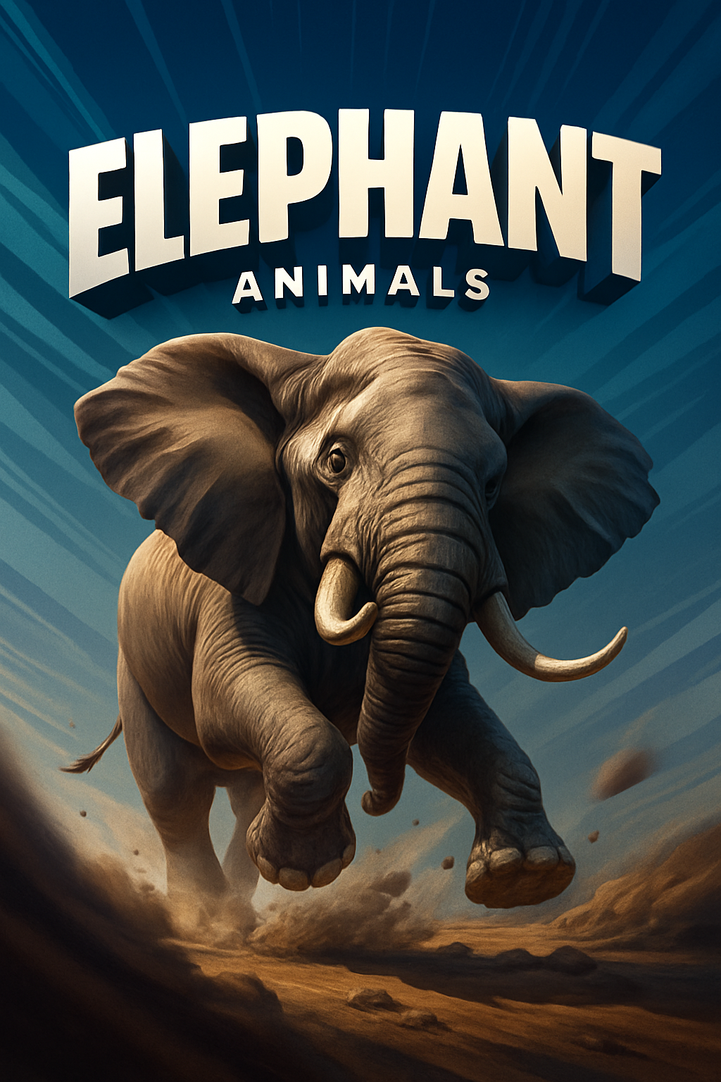 A powerful 3D illustration of an elephant in mid-leap, showcasing dynamic lines radiating outward. The background features a smooth gradient, enhancing the sense of motion and energy.