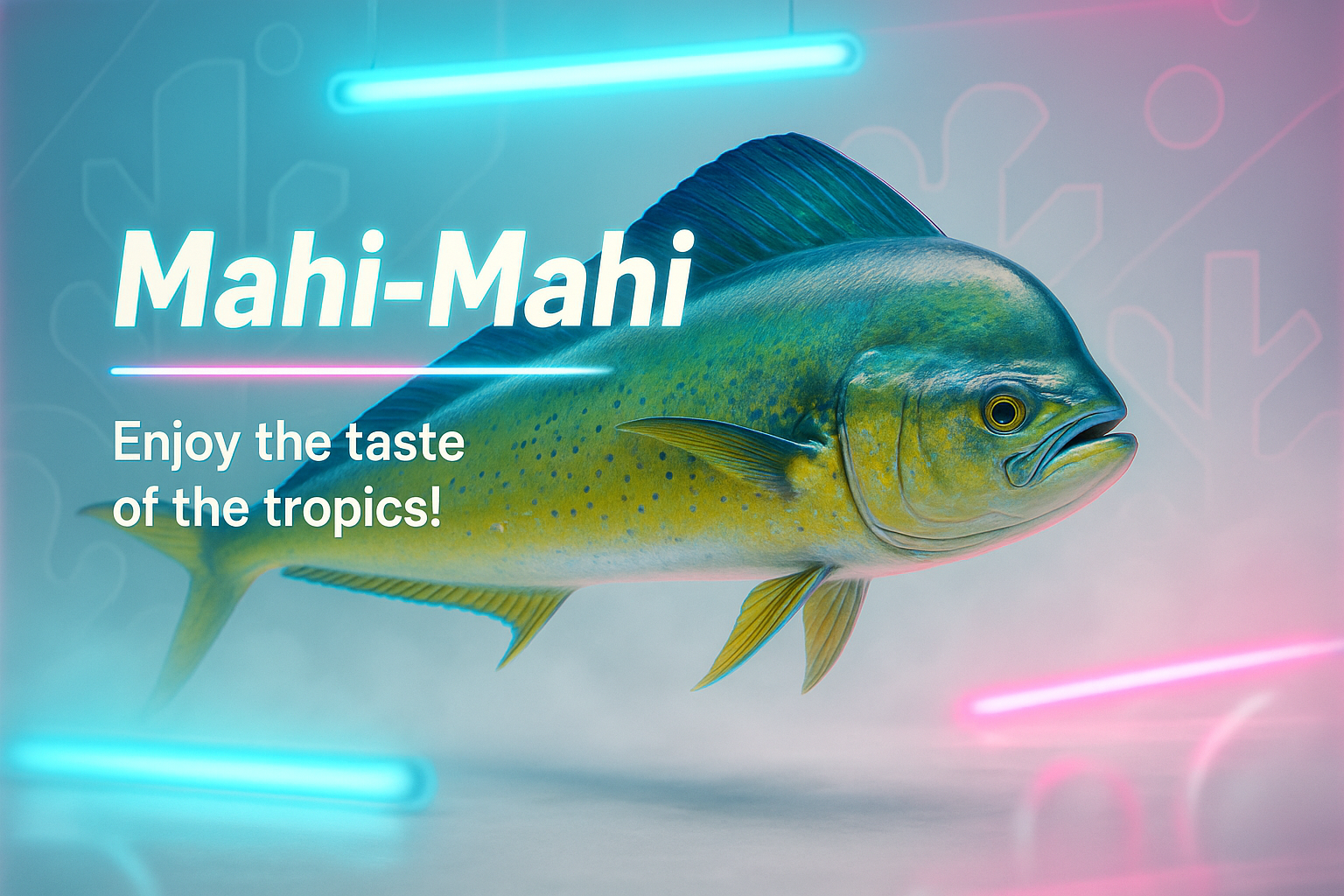 Vibrant Mahi-Mahi Seafood Promotion Graphic
