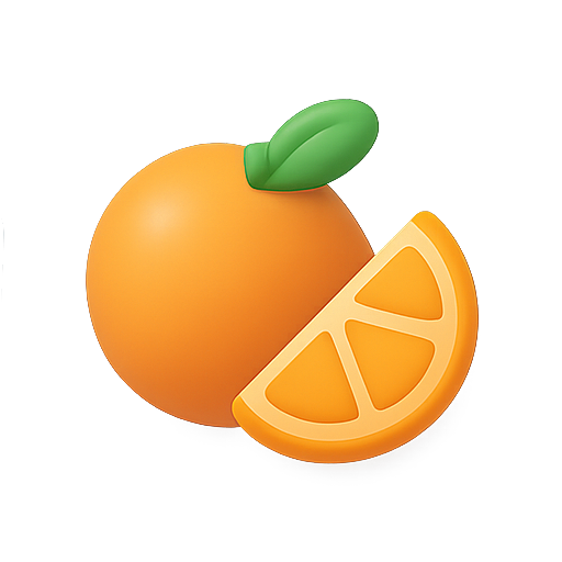 A vibrant and playful illustration of an orange fruit with a sliced segment. Ideal for food-related content, health blogs, or culinary apps, featuring a clean and modern design.
