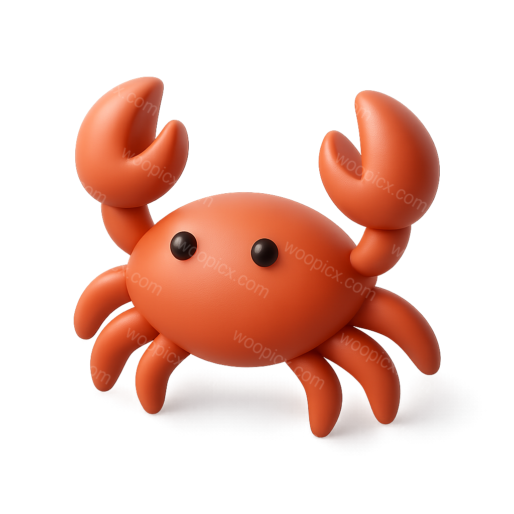 A vibrant 3D crab icon featuring prominent claws, rendered in a three-quarter isometric view with a smooth, glossy finish on a transparent background.