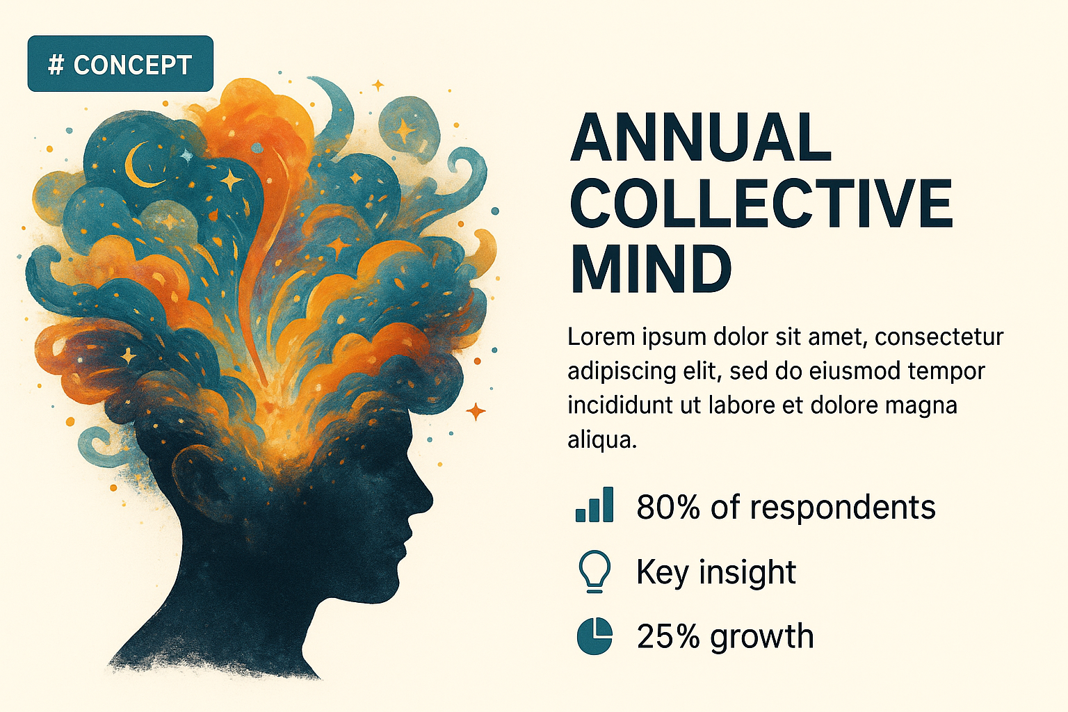 /Collection: /by davooda/Type: PNG/A visually striking illustration representing the concept of a collective mind, featuring vibrant colors and abstract elements. Ideal for reports or presentations on insights and growth.