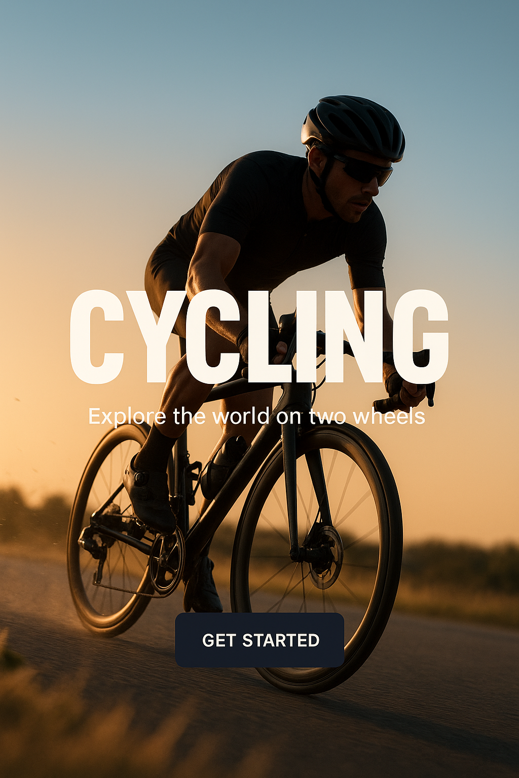 This promotional image showcases a cyclist in motion during sunset, emphasizing adventure and exploration. Ideal for cycling-related campaigns.
