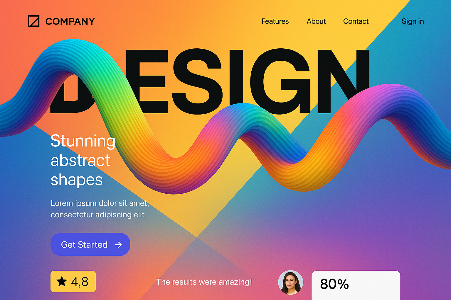 /Collection: /by davooda/Type: PNG/A vibrant landing page featuring abstract geometric shapes, a bold headline, and a clear layout. The design includes colorful gradients and a modern aesthetic.