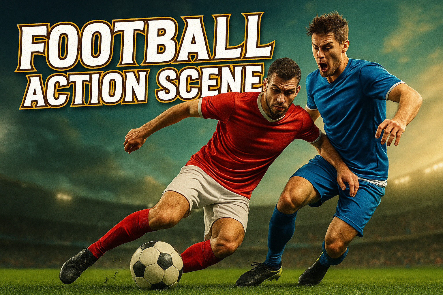/Collection: /by davooda/Type: PNG/Vibrant sports action scene depicting two football players in a competitive moment, showcasing intensity and athleticism. Ideal for sports marketing or promotional materials.