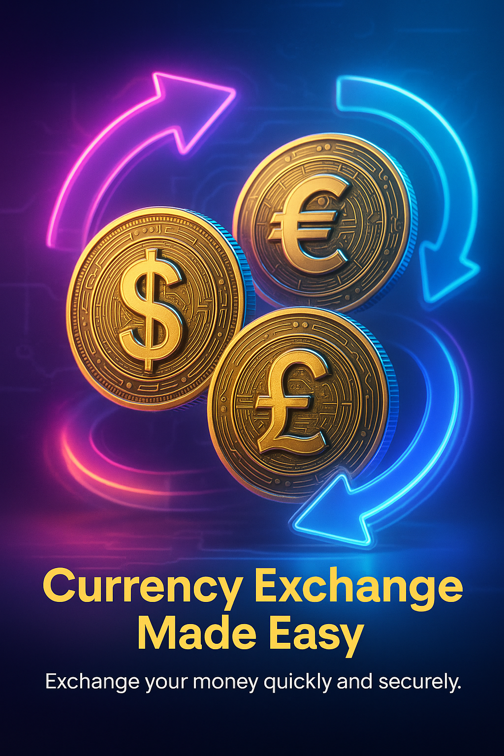 Vibrant graphic showcasing currency exchange symbols with modern design elements. Ideal for financial services marketing and digital platforms.