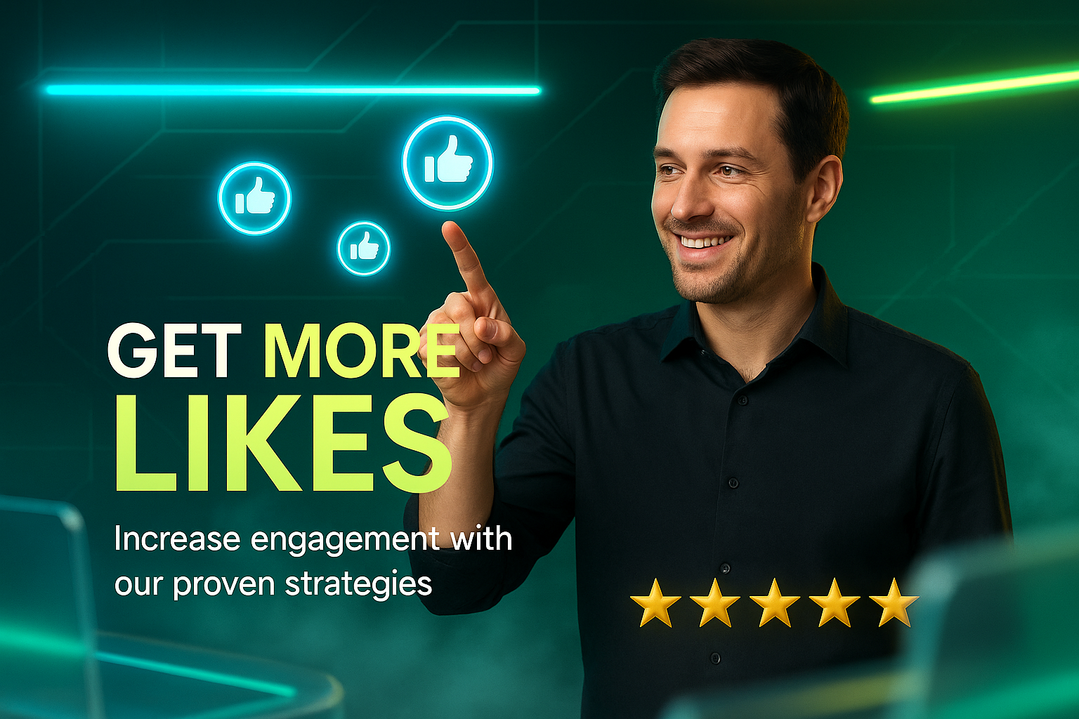 A vibrant promotional graphic aimed at social media marketers, featuring a smiling man encouraging engagement through likes, perfect for digital marketing campaigns.