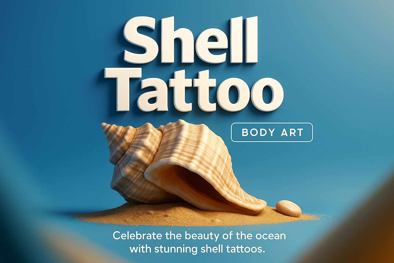 Stylish 3D Shell Tattoo Illustration with Text Elements