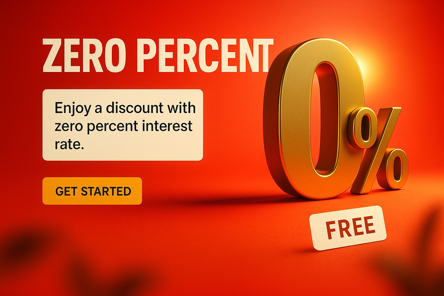 /Collection: /by davooda/Type: PNG/A vibrant promotional banner featuring a 3D gold '0%' text on a red background, highlighting a zero percent interest rate offer. Ideal for marketing campaigns.