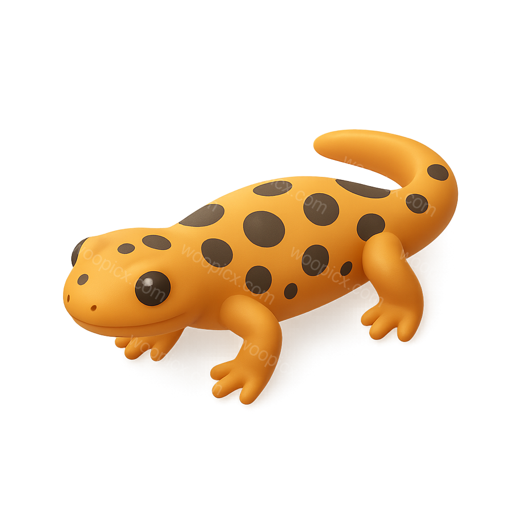 A stylized 3D icon of a spotted salamander, featuring a vibrant orange body with black spots, shown in a three-quarter view on a transparent background.