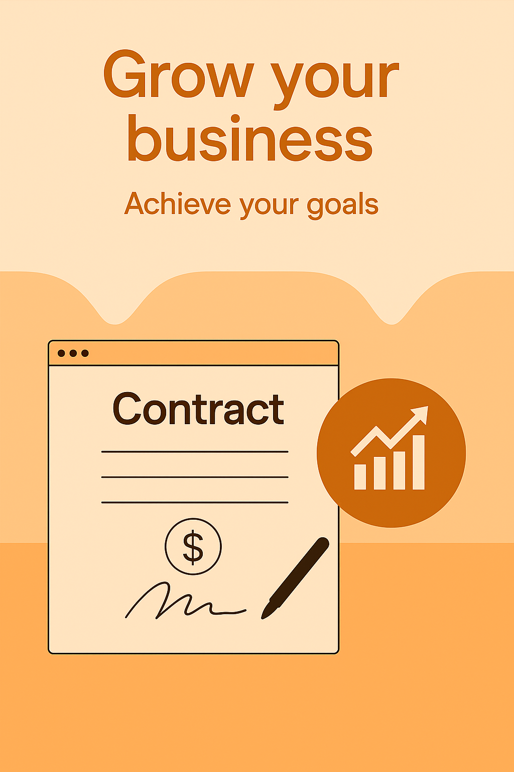 /Collection: /by davooda/Type: PNG/Illustrative graphic showcasing a contract and growth chart, designed for business development themes. Ideal for marketing materials, social media, and presentations.