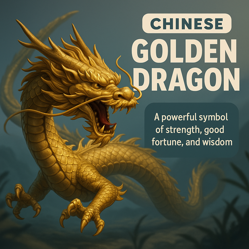 Illustration of a Chinese Golden Dragon Symbolizing Strength and Wisdom