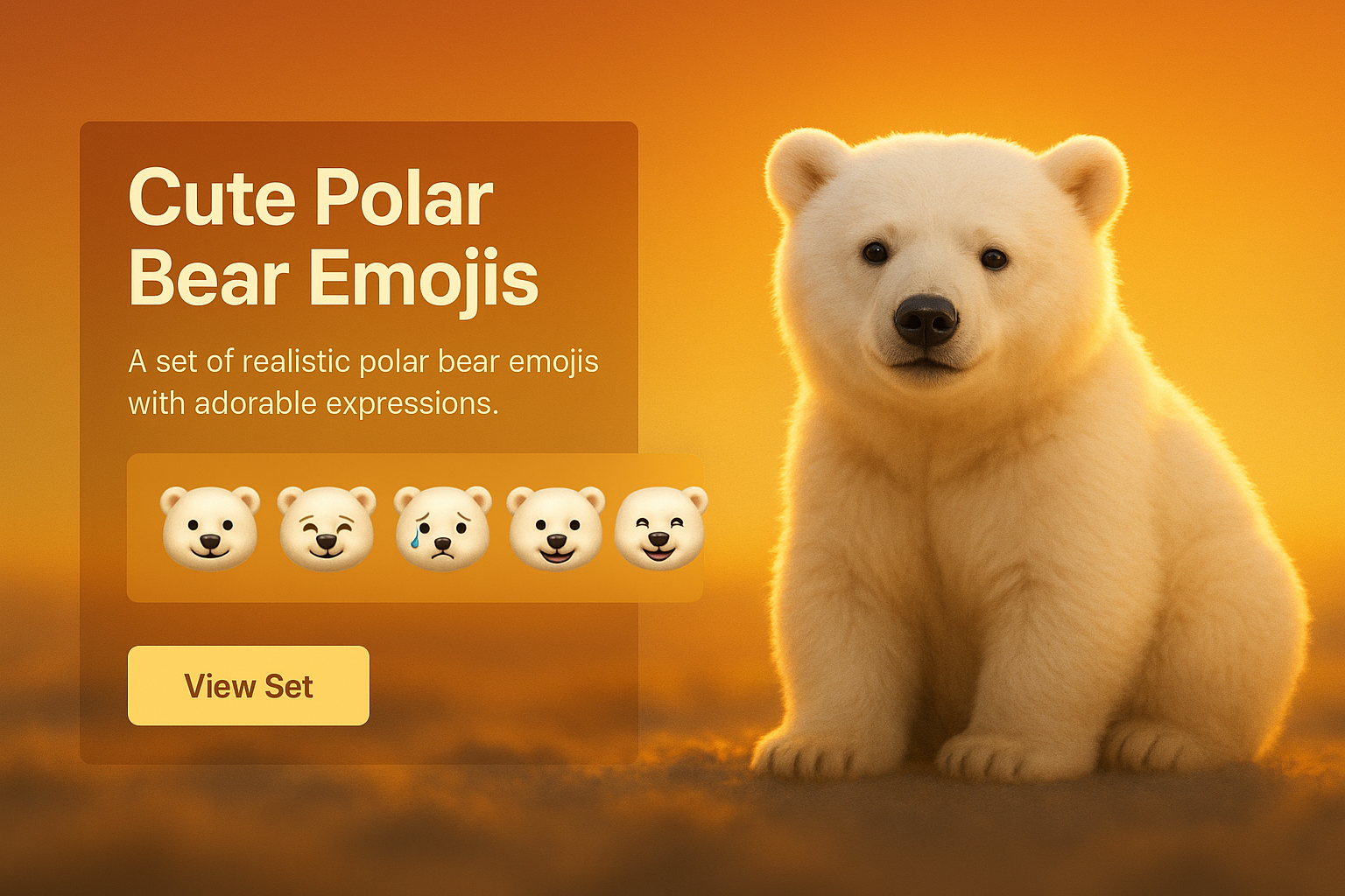 This is a promotional graphic showcasing a collection of cute polar bear emojis. The warm color palette and soft focus create an inviting and cheerful aesthetic, appealing to emoji enthusiasts.