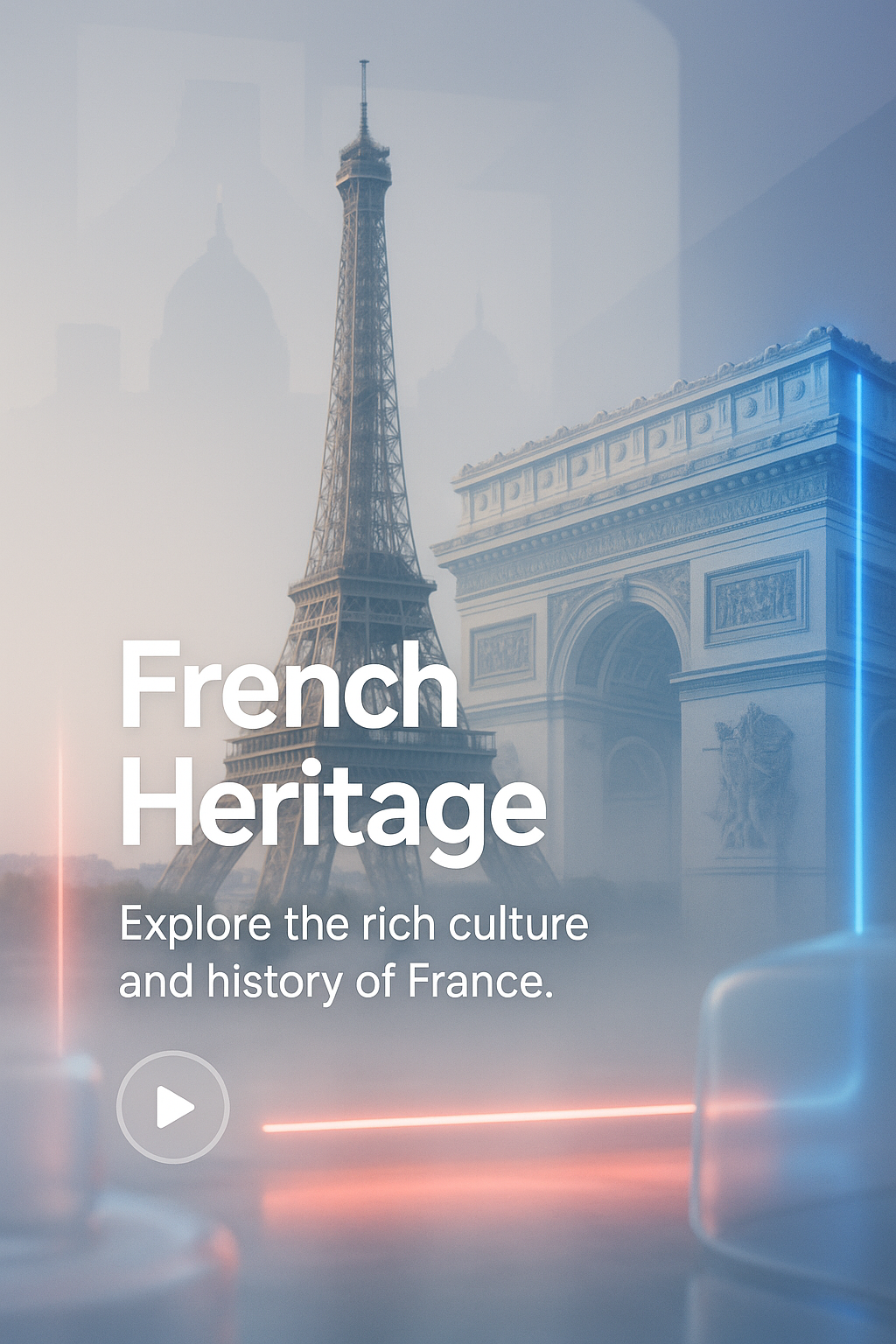/Collection: /by davooda/Type: PNG/Visually engaging promotional graphic highlighting French culture and history, featuring iconic landmarks like the Eiffel Tower and Arc de Triomphe. Ideal for tourism or cultural exploration campaigns.
