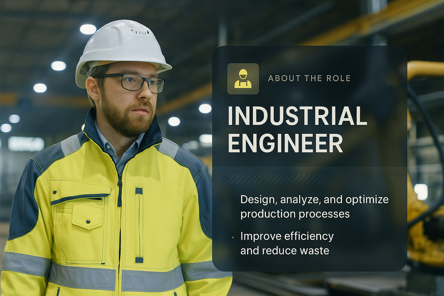 /Collection: /by davooda/Type: PNG/A modern web design layout featuring an industrial engineer in a safety helmet, with a sleek overlay showcasing job details. The design includes a gradient background, icon, and clear text.