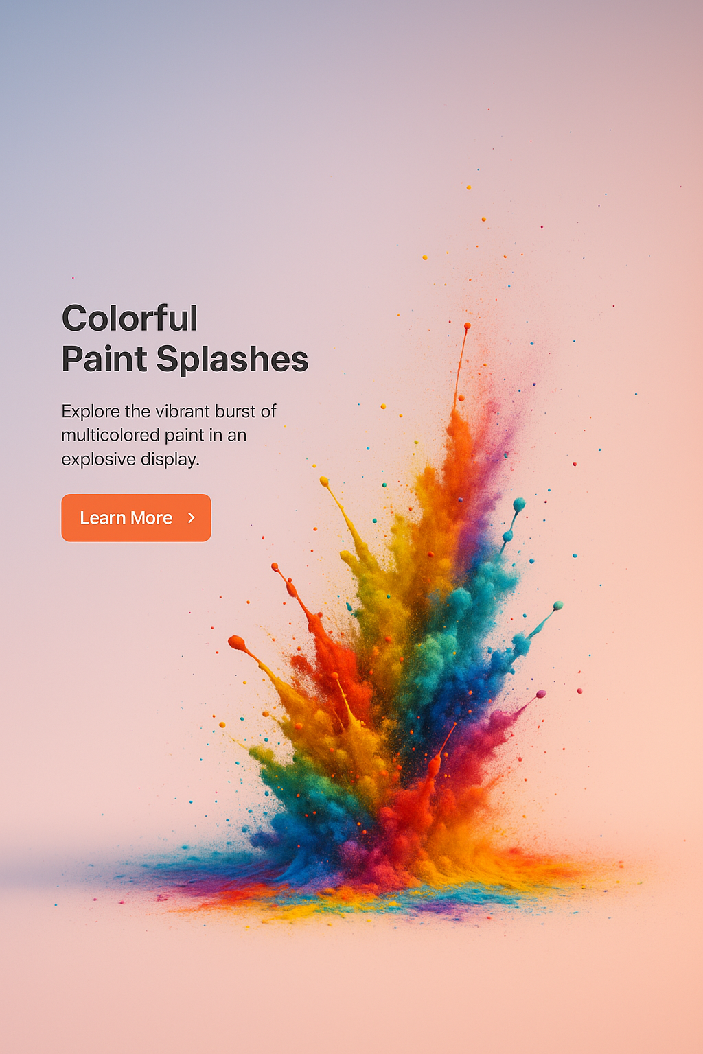 /Collection: /by davooda/Type: PNG/An artistic representation of colorful paint splashes creating an explosive display on a soft gradient background. The scene captures a burst of vibrant colors with a clear call-to-action button.