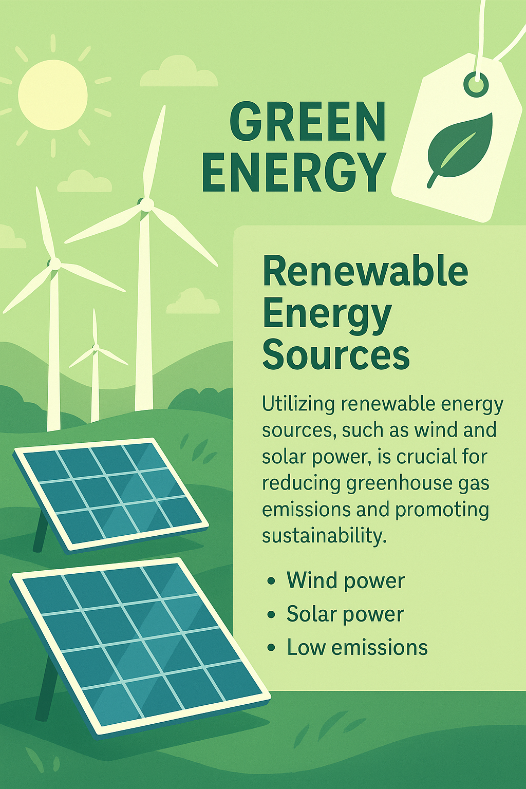 /Collection: /by davooda/Type: PNG/A visually engaging infographic highlighting renewable energy sources like wind and solar power. Designed with a soft green color palette, it emphasizes sustainability and environmental awareness.