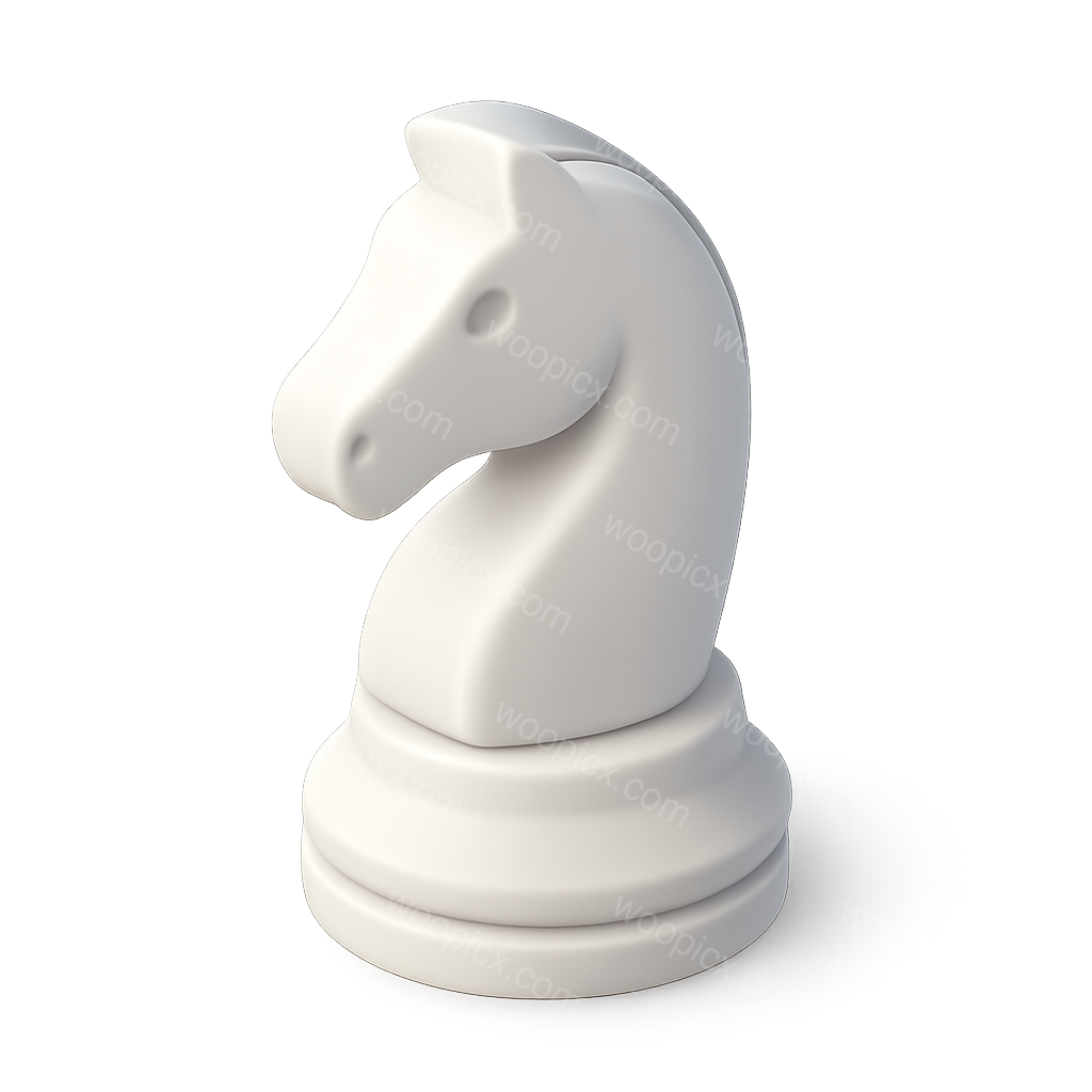 /Premium/Collection: /by davooda/Type: PNG/A stylized 3D representation of a knight chess piece, rendered in a three-quarter view with a smooth, white finish. The design features a transparent background, emphasizing its isometric and volumetric qualities.