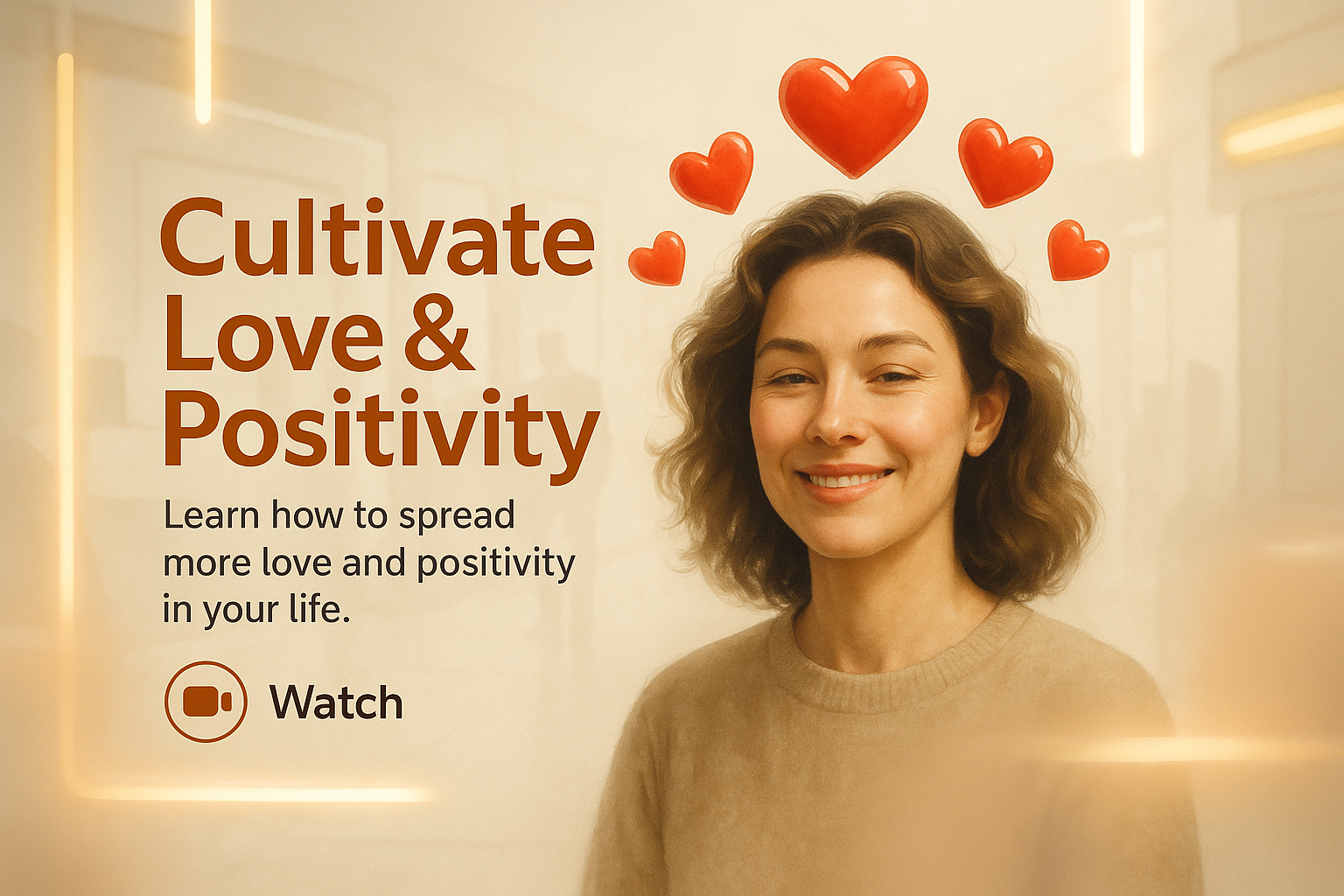 /Collection: /by davooda/Type: PNG/Uplifting social media graphic featuring a smiling individual surrounded by hearts, designed to encourage spreading love and positivity, perfect for personal development content.