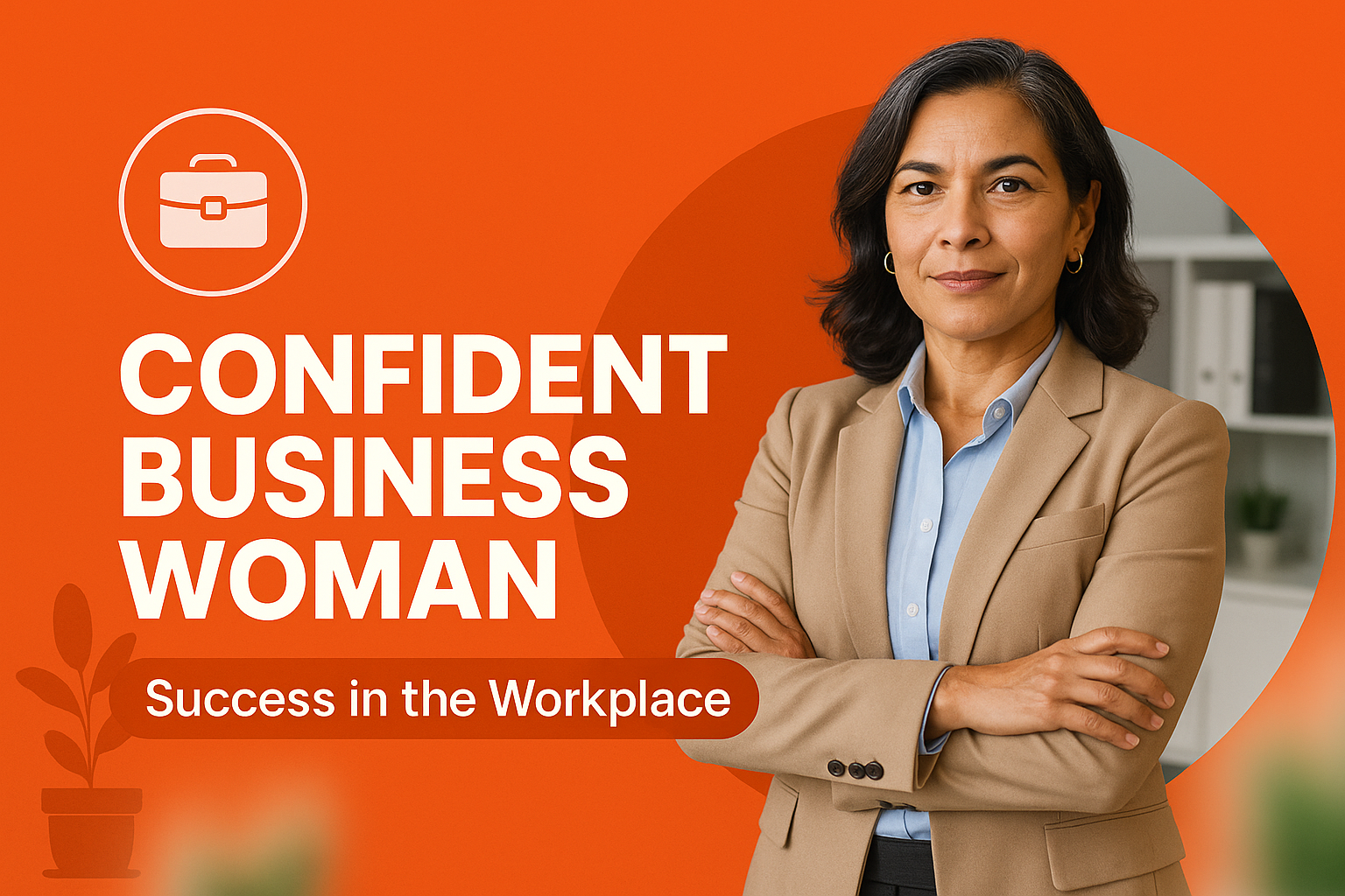 /Collection: /by davooda/Type: PNG/A professional graphic featuring a confident business woman, set against a vibrant orange background. Ideal for themes of empowerment and success in business contexts.