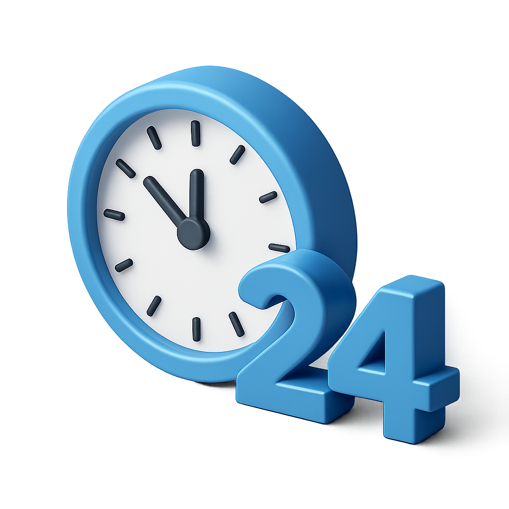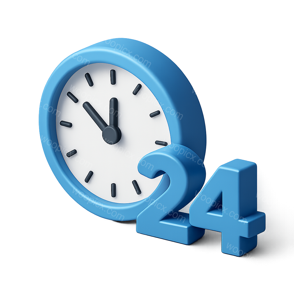 Stylish 3D Clock Icon in Blue with 24-Hour Display