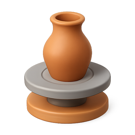 A minimalist 3D rendering of a pottery vase displayed on a circular stand. The design features smooth, simple shapes and a warm color palette, making it suitable for decorative purposes or product showcases.