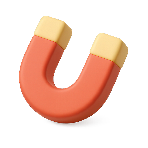A vibrant 3D render of a magnet, featuring a bold, simplistic design with a modern aesthetic. Ideal for educational materials or branding related to attraction and connection.