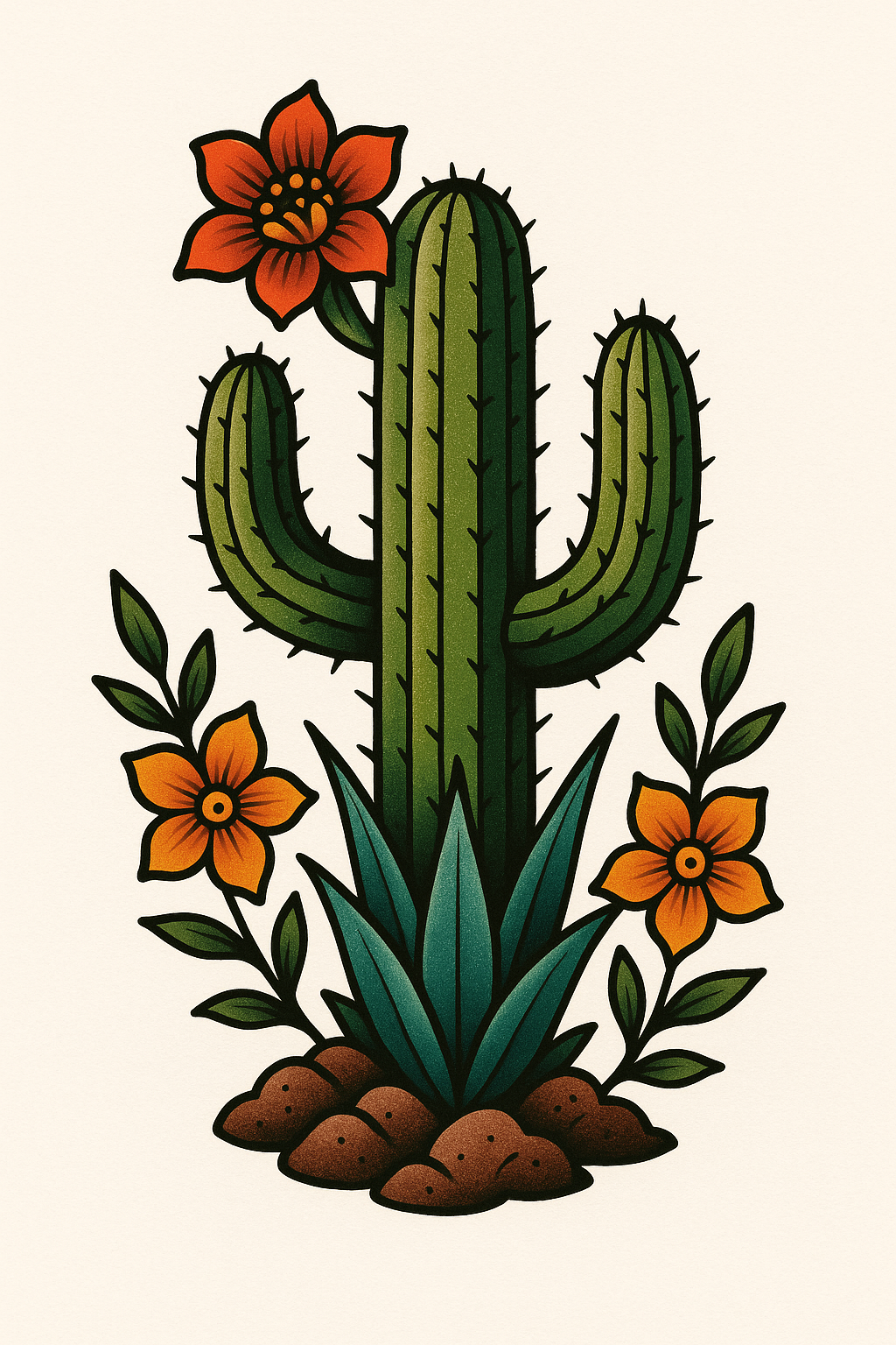 Dynamic Cactus Bloom Illustration with Vibrant Colors