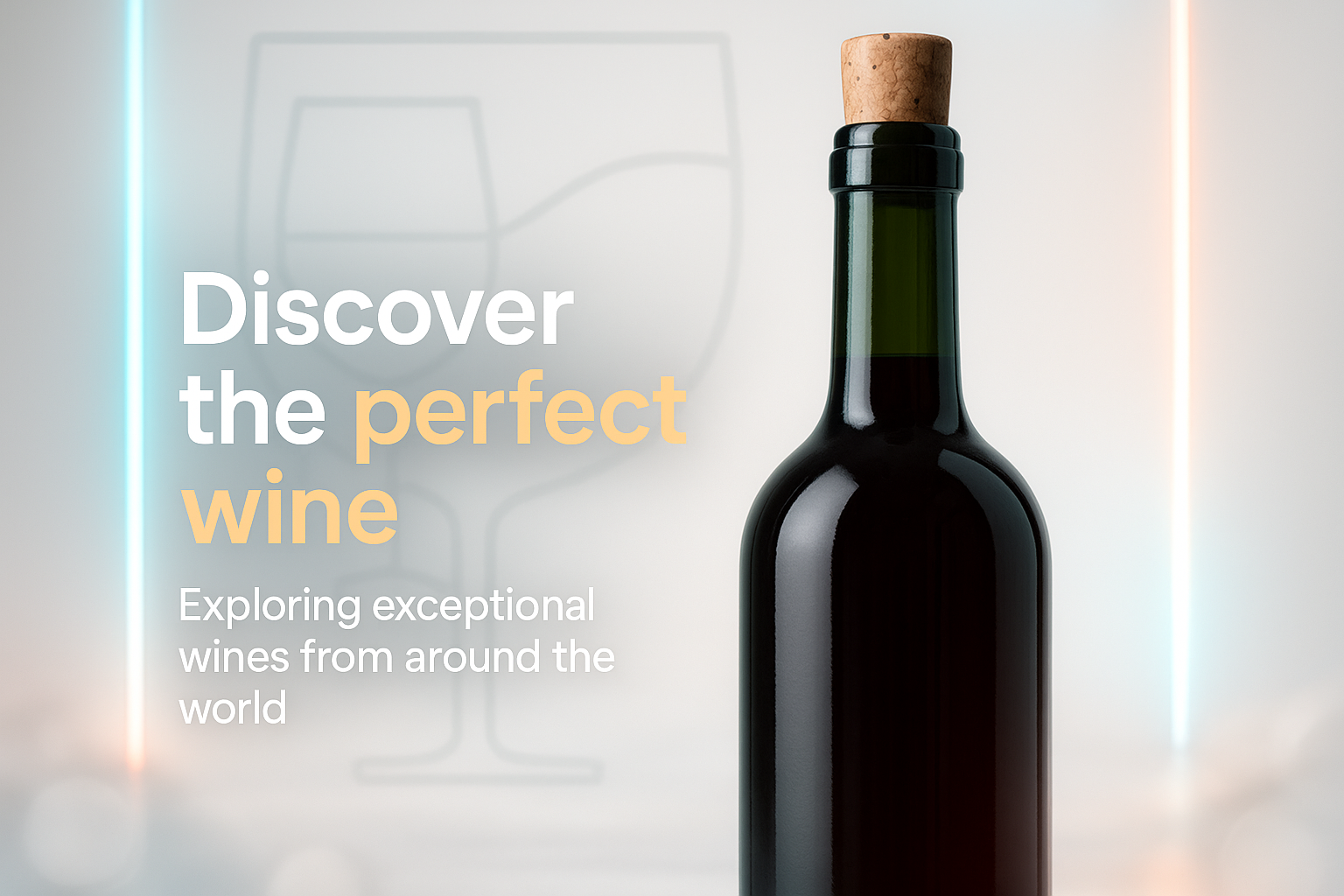 /Collection: /by davooda/Type: PNG/Visually appealing promotional image showcasing a wine bottle with a subtle glass silhouette in the background, aimed at wine enthusiasts exploring unique selections globally.