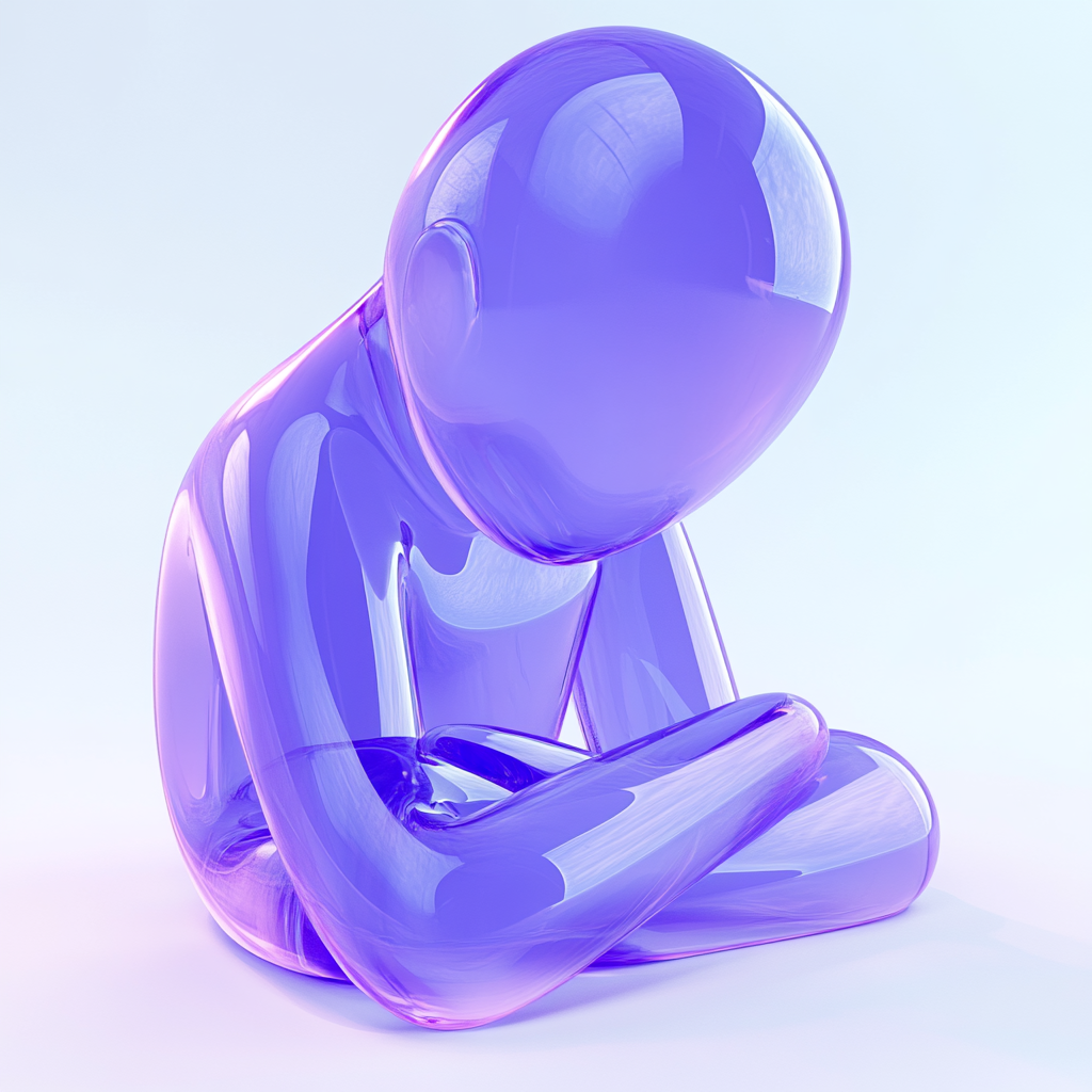 /Collection: /by davooda/Type: PNG/A modern 3D-rendered abstract sculpture depicting a sitting figure in a contemplative pose. The translucent purple material and smooth curves create a serene and introspective mood, ideal for contemporary art displays or as a decorative element in design projects.